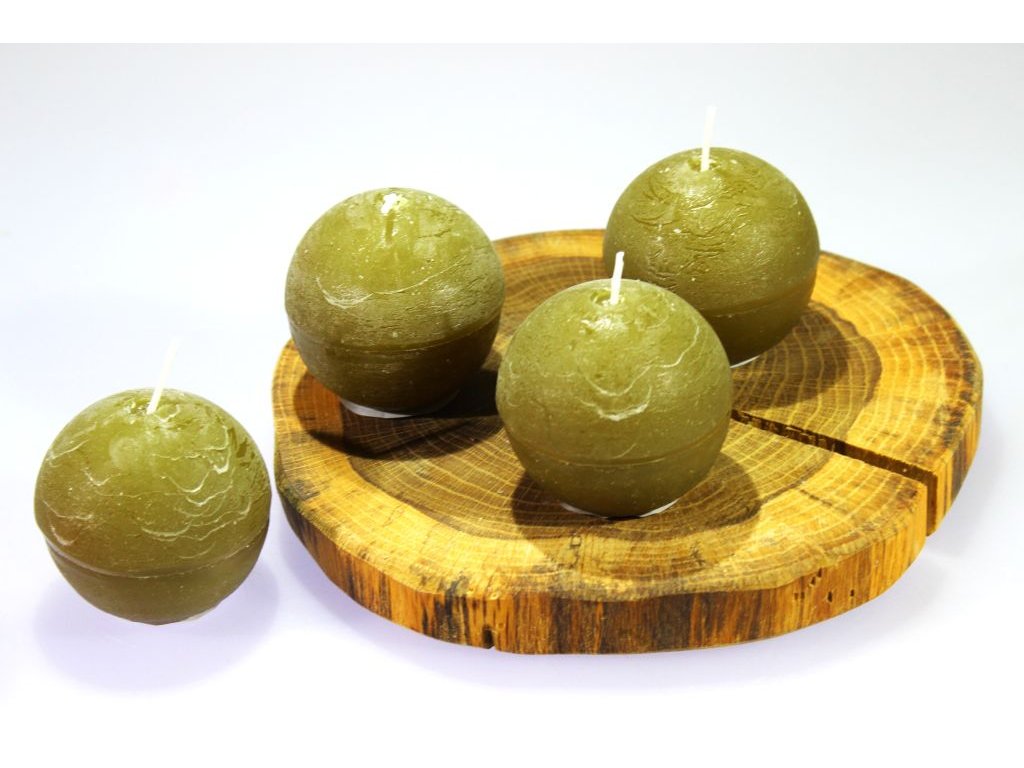 1ks Svíčka koule 6,5cm - khaki