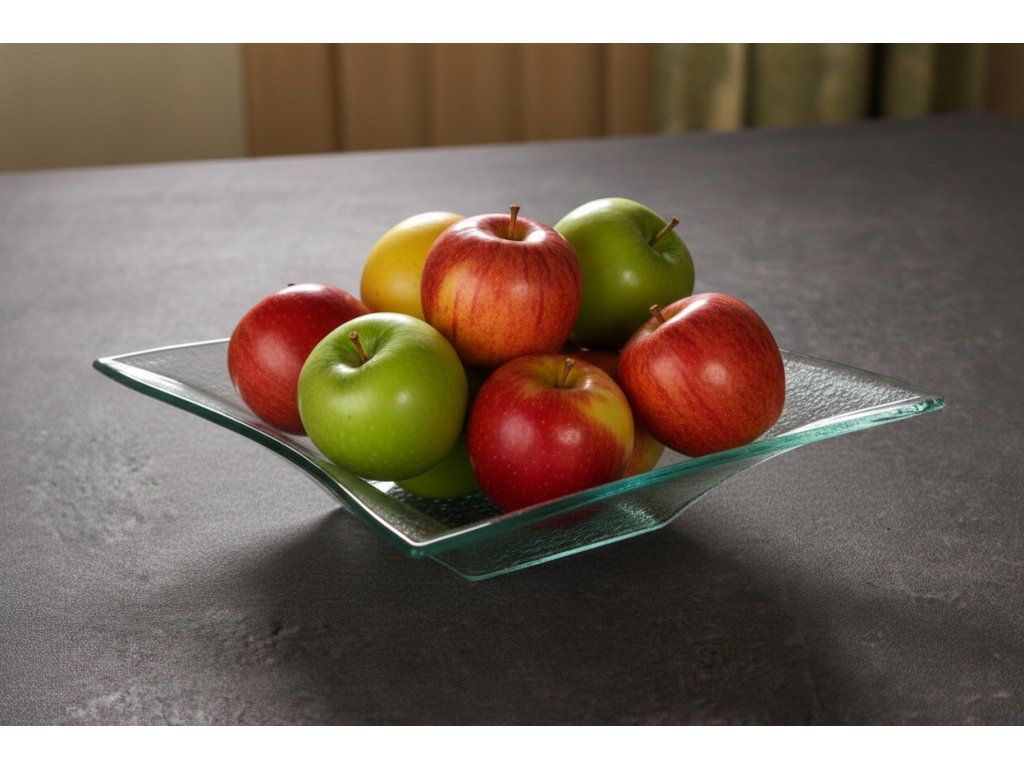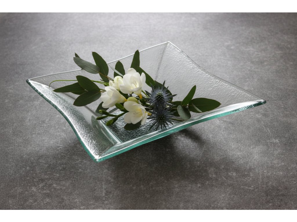 Elegantní čtvercová mísa z čirého skla se stane výrazným doplňkem každého stolu. Díky hlubokému tvaru je ideální na saláty, ovoce, těstoviny, pohoštění pro návštěvy nebo jako designová mísa na dekorace (svíčky, sušené květy, sezónní aranžmá). Jemně zvlněné okraje a strukturované dno působí moderně a zároveň nadčasově.
