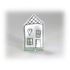 Drobný skleněný svícínek na jednu čajovou svíčku ve tvaru domečku. Domeček je dekorovaný bílou skleněnou fritou. Je ručně domalovaný. Každý domeček je originál a může se drobně lišit v kresbě.
