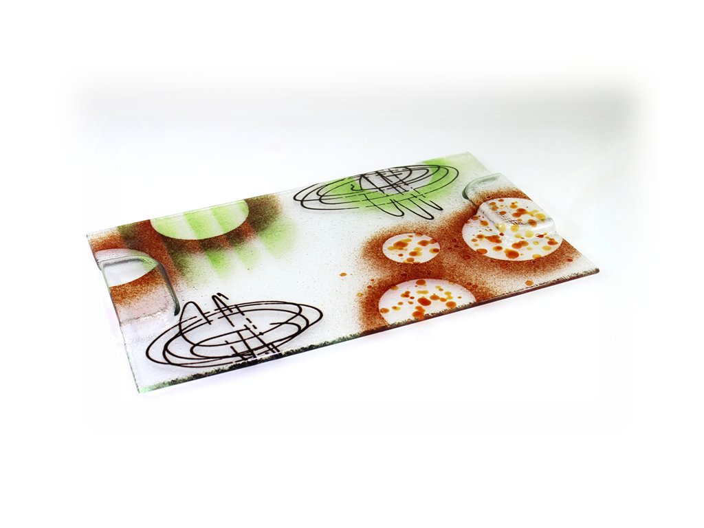 Ručně malovaný skleněný servírovací podnos, 40 × 25 cm