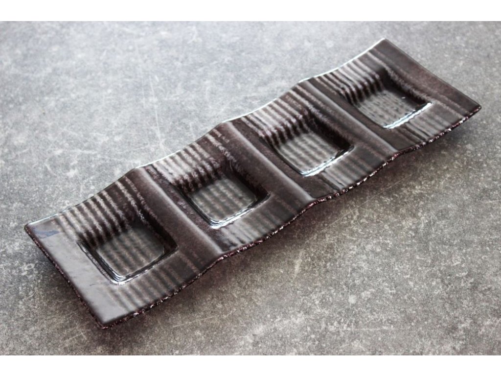 Skleněný lehaný svícen na 4 svíčky, 36x12cm. Barevné provedení do oranžova.