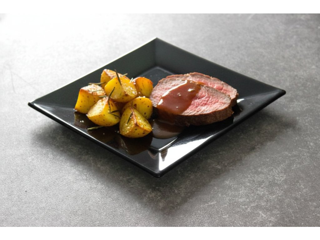 Talíř je svým jednoduchým tvarem velice praktický, má mrně zvednuté okraje, aby nic neuteklo a velkou servírovací plochu.